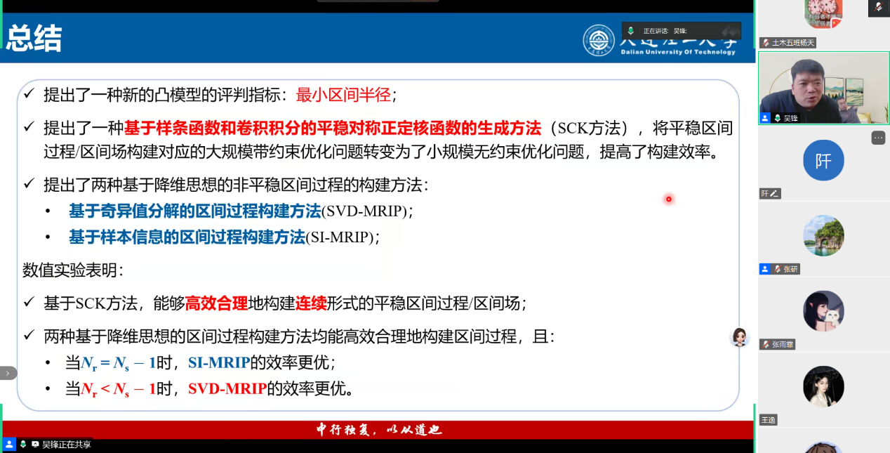 9月27日,大連理工大學力學與航空航天學院吳鋒教授通過騰訊會議線上平臺,為我校師生作了題為《區(qū)間過程/區(qū)間場的高效構建研究及工程應用》的學術講座。本次講座由張研教授主持,吸引了校內外百余位師生在線參與。